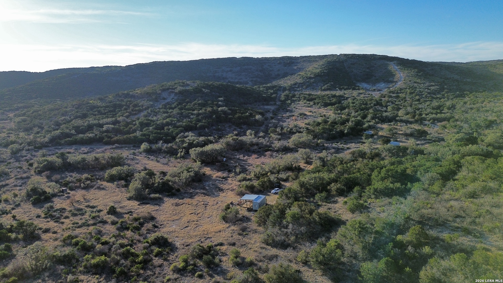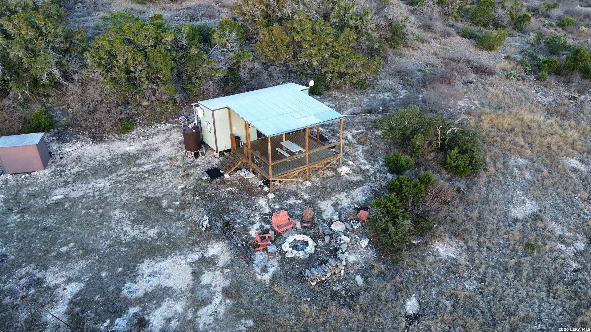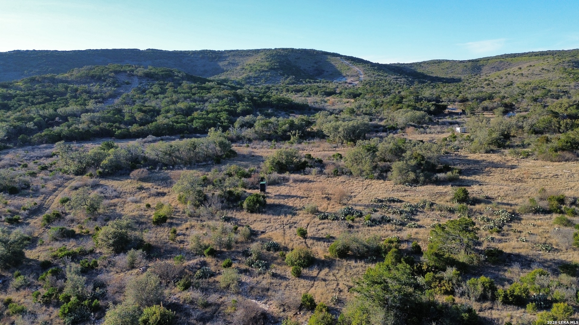 Rzeka Ranch offers 136.29 acres of prime recreational land just 8 miles from Concan, tucked at the end of a private road and surrounded by large neighboring ranches for exceptional privacy. The property is rich with native and exotic wildlife, making it a standout hunting destination-whitetail, turkey, dove, aoudad, sika, blackbuck, fallow, oryx, and more have seen on the ranch. Hunting blinds and feeders convey. At the heart of the property sits a well-appointed tiny house with two queen beds, a full bathroom, kitchen, and a spacious deck overlooking the valley. It currently runs on rainwater collection but can easily be connected to the on-site water well. A storage barn and additional outbuildings provide ample utility. The ranch consists of four platted and surveyed tracts, giving the future owner flexibility to keep it whole or sell individually. With the Frio River just minutes away, Rzeka Ranch offers year-round enjoyment-hunt in the fall and winter, float the river in summer, and relax in total seclusion any time of year.