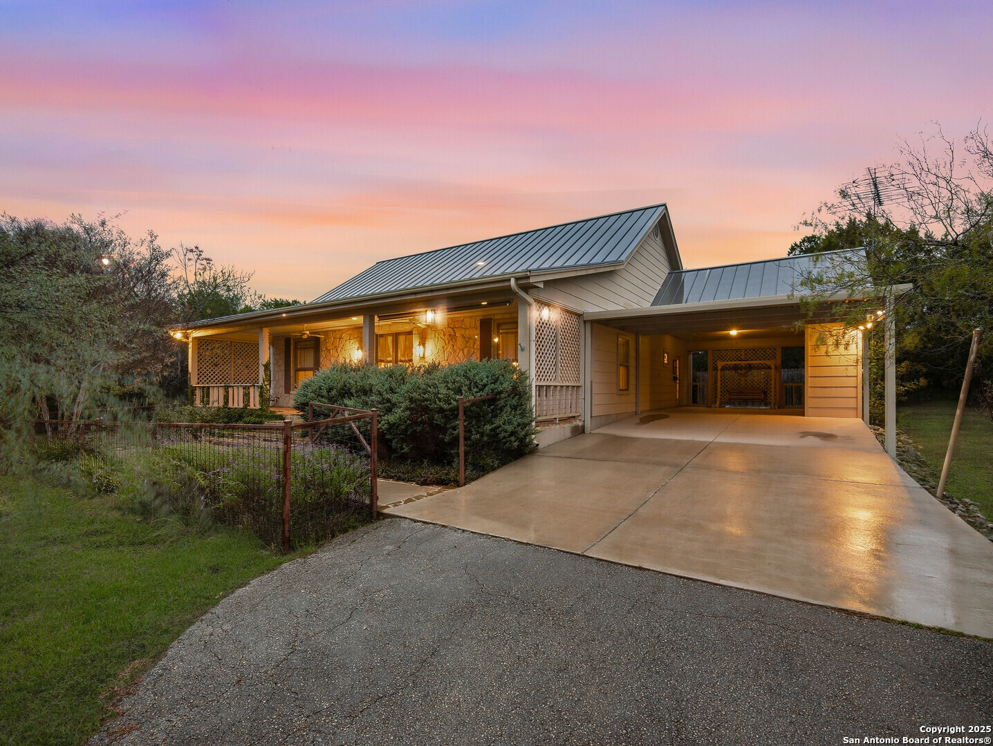Extraordinary Hueco Springs Ranches Gated 10.08 +/- Acres with a 4 Bedroom, 3.5 Bath Hill Country Home with an Attached 1 Bedroom, 1 Bath Garage Apartment and a Charming 2 Bedroom, 2.5 Bath Cottage with Like Architectural Style. The cottage was built in 2001 by the same custom builder that built the original home. No HOA, with easy to read deed restrictions, the owners are unaware of any amendments to restrictions. One farm/ranch animal per acre allowed, not including cats and dogs. Majestic oak trees are scattered throughout the level property that additionally features a cocktail pool (4 ft. deep), Tuff Shed, large metal barn (4961 sq. ft., per appraisal district with water and electric), 30 amp circuit near barn for RV, side pasture, additional gate near homes that separate the main pasture, covered parking at both homes, and rainwater capture systems for the pool and at the front of the main house. Built-in custom cabinetry throughout both homes, too many extras to list. The agricultural exemption is listed as Native Pasture on the appraisal district site, open use per owner. Acreage in NBISD, don't miss this multi-generational property. The address is actually on Whispering Woods Trail.