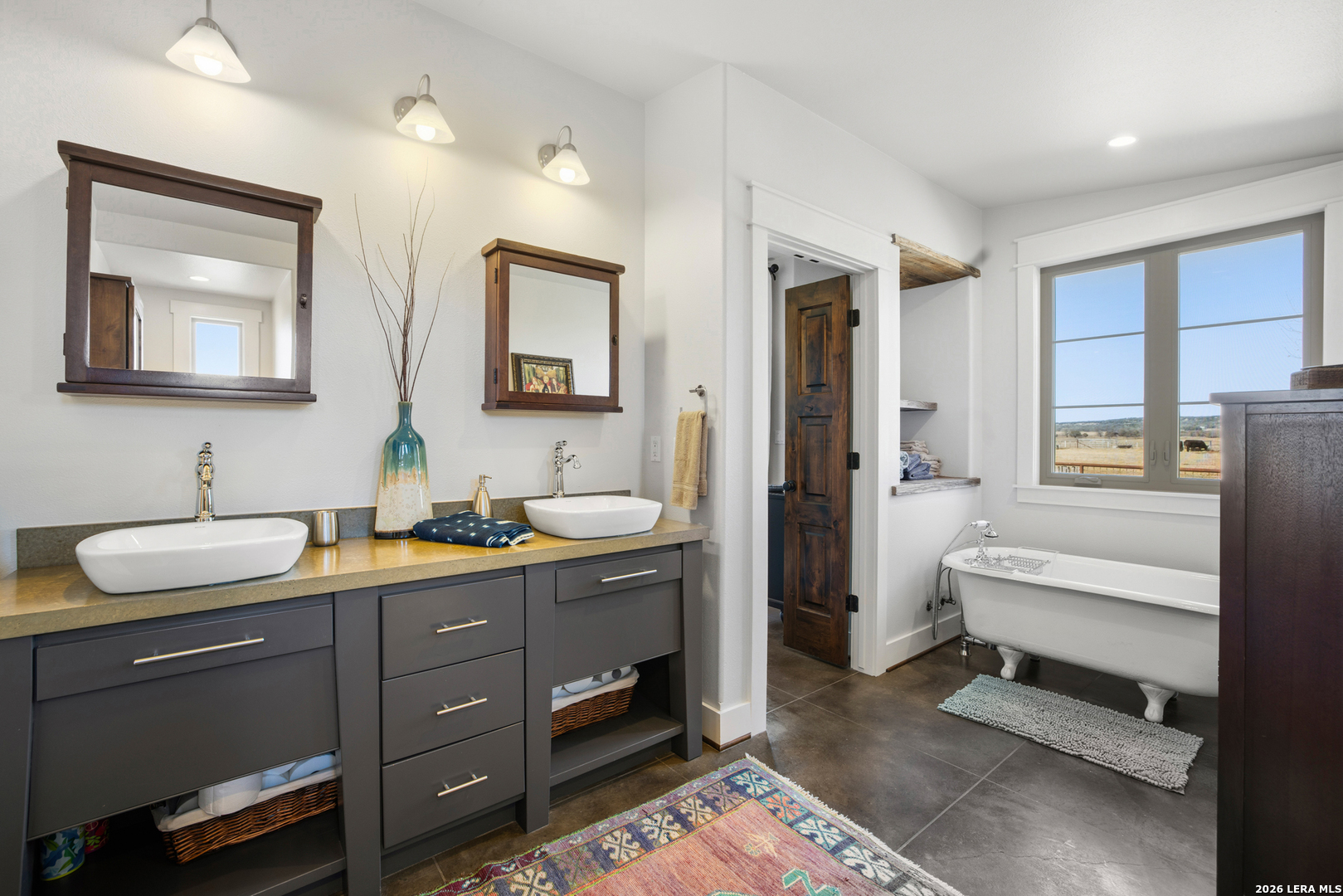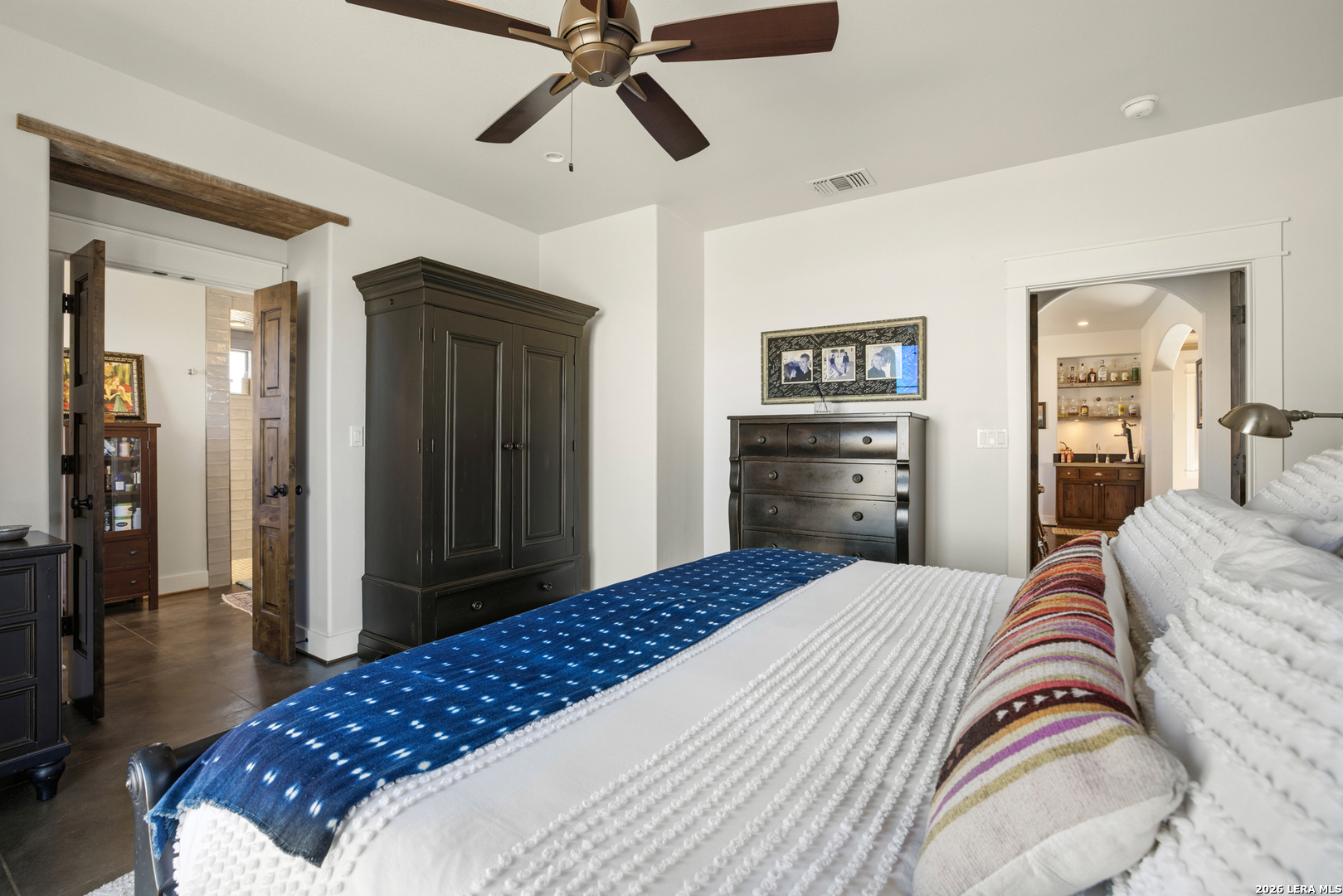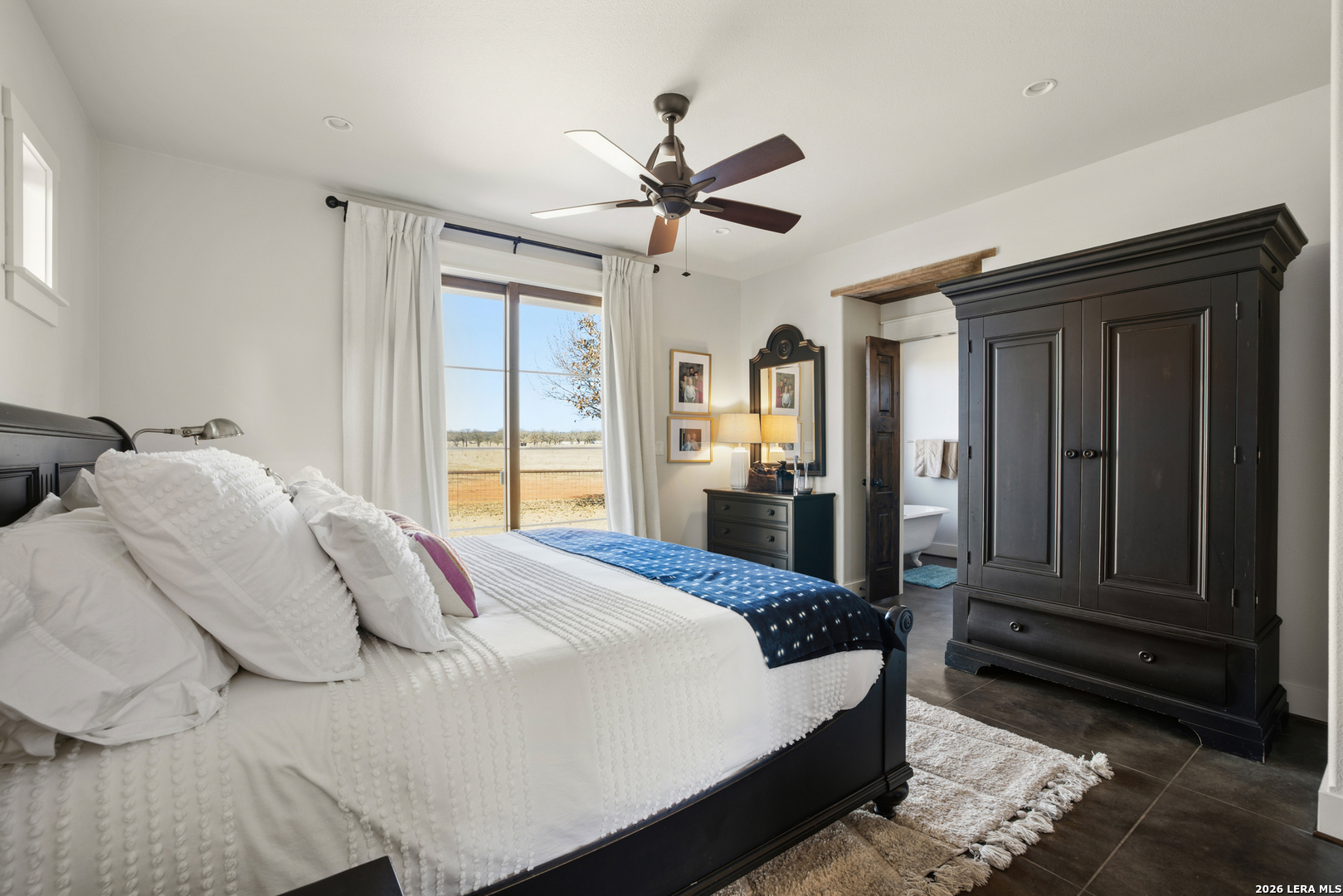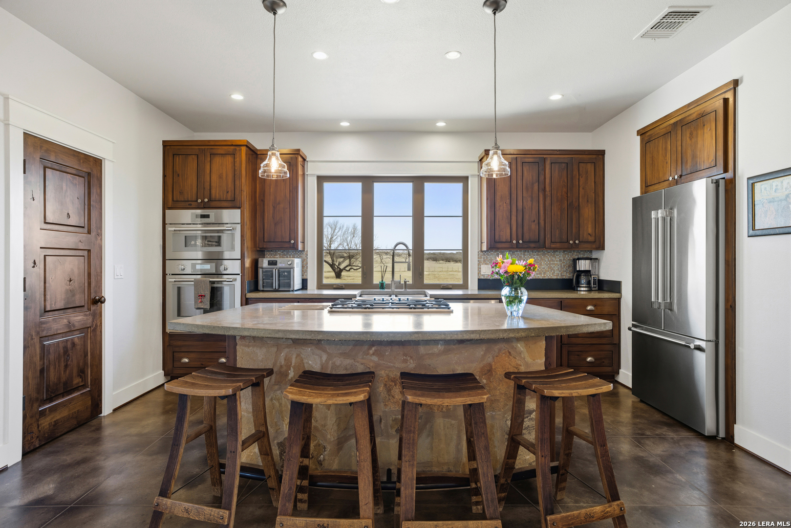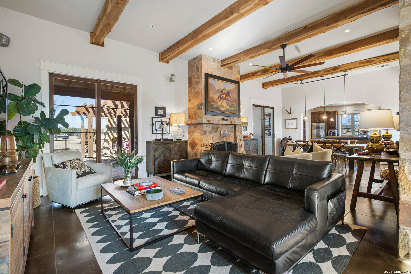 Set minutes from Fredericksburg's Main Street and wineries, 5686 Ranch Road 1631 offers 13.25 acres with the kind of equine and livestock improvements buyers rarely find this close to town. Behind a custom electric gate, the property is cross-fenced with tight lock-net and pipe/panel fencing, creating a clean, functional layout for horses or cattle. Three improved grass pastures, a clay-lined stock pond, and an agricultural exemption support both lifestyle and long-term usability. The 2,315 sq ft custom home-built in 2009 by Laughlin Homes & Restoration-has just been fully repainted inside, giving the residence a crisp, move-in-ready feel. The home features 3 bedrooms, 3.5 baths, a spacious kitchen with Thermador appliances, custom cabinetry, concrete countertops, and an island built for gathering. Outdoor living is equally strong with a stone patio, pergola, outdoor fireplace, and outdoor shower-ideal for Hill Country evenings after a day outside. Infrastructure includes a 60x40 modern Mueller metal barn with a custom welded pen system, covered working pens, a rainwater collection system for the wash rack, and a 10x10 enclosed insulated feed/tack room. A separate 1-bedroom casita with full bath connects to a double carport and workshop, offering flexibility for guests, a ranch hand setup, or additional living space. B&B permitted and an additional guest home can be constructed (buyer to verify). This is a true turnkey ranch setup in a prime Fredericksburg corridor.