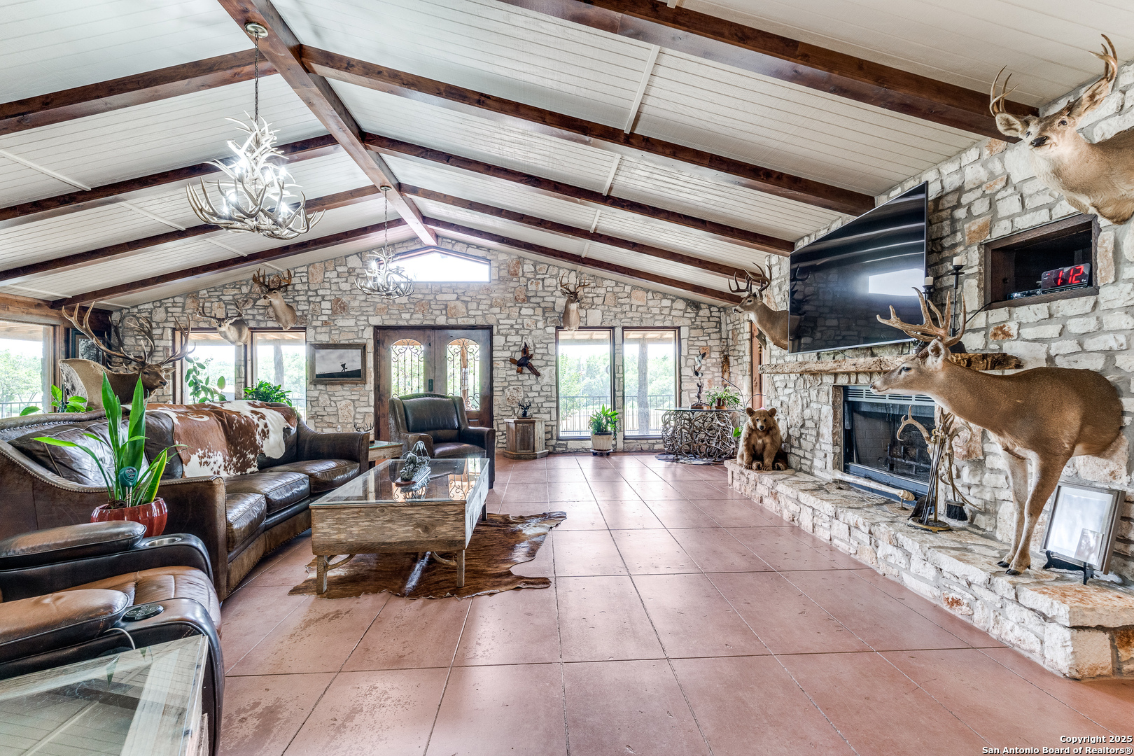 Luxury Ranch Retreat just Minutes from San Antonio!! This property offers a total of 31.5 acres and 2 homes, perfect for multi-family living or large-scale entertaining! Discover an ideal blend of rustic luxury, function, and outdoor living with this breathtaking high-fenced property. Designed for both comfort and utility, this ranch delivers peaceful seclusion without sacrificing convenience. This property is like its own private oasis! *At the heart of the property sits a stunning 4,215 sq. ft. rustic ranch-style home featuring a wraparound porch, sparkling pool, and sweeping country views. Inside, you'll find: 3 spacious bedrooms & 3 full baths Office/multi-use room 2 living areas with soaring ceilings 3 impressive wood-burning fireplaces Unique stone flooring Safe room * 2nd residence features an impressive 3/2.5 1948 sf two-story rock home, which not only boasts aesthetic charm but also speaks to durability and timelessness. 3 beds / 2.5 baths Fireplace Main floor Master suite with double vanities, his & her closets Custom kitchen cabinets Plus enjoy the outdoors at its absolutley amaing outdoor entainment area with firplace, bar, sink, ice make, refrigerator... Property Highlights: High-fenced with automatic gated entrance Abundant wildlife, white-tailed deer, turkey, dove, ducks, cranes & more Deer/livestock pens, Large well-fed stocked pond with pier, plus a 2nd pond, Two water wells Coastal hay field, Three-stall horse/livestock barn with covered equipment storage. Additional open barn with stalls, Outbuilding with walk-in cooler, walk-in freezer & stainless steel countertops, Storage building & 2-car carport, Fenced yard & in-ground pool. Endless Possibilities, whether you envision a private retreat, horse or livestock operation, 4-H projects, or a turnkey ranch with income potential, this property has it all. The combination of wildlife habitat, ranch infrastructure, and country living makes it ideal as a full-time residence, weekend getaway, or even a corporate retreat. Peaceful, private, and move-in ready-this ranch delivers the very best of country living just minutes from San Antonio!