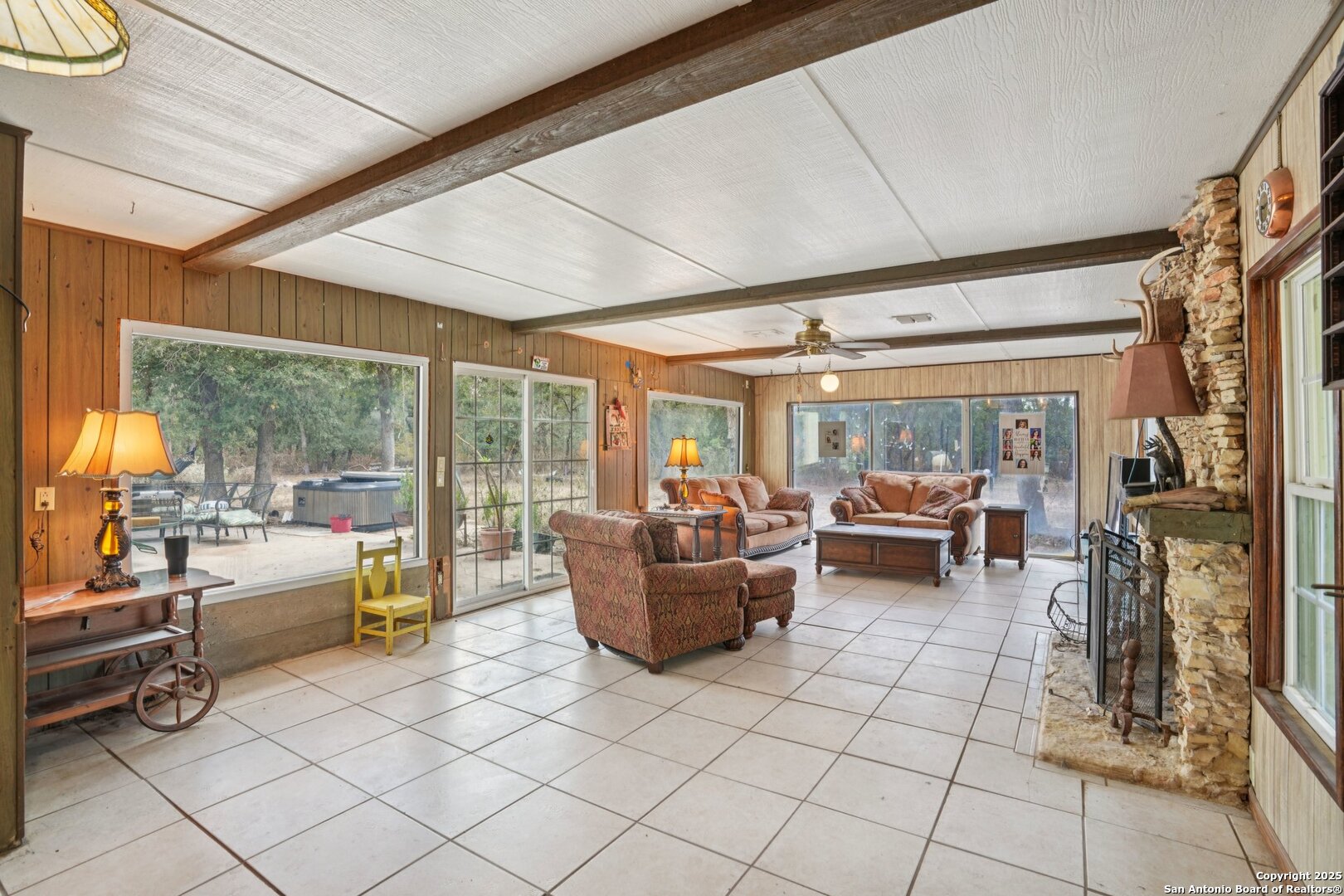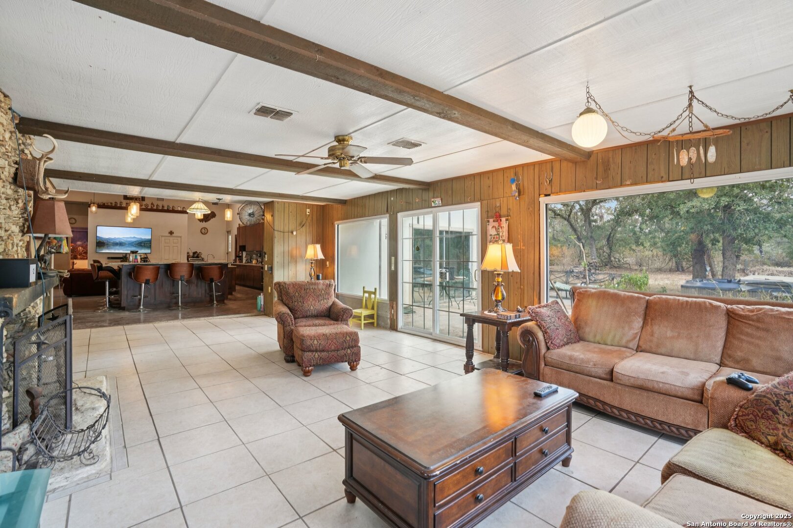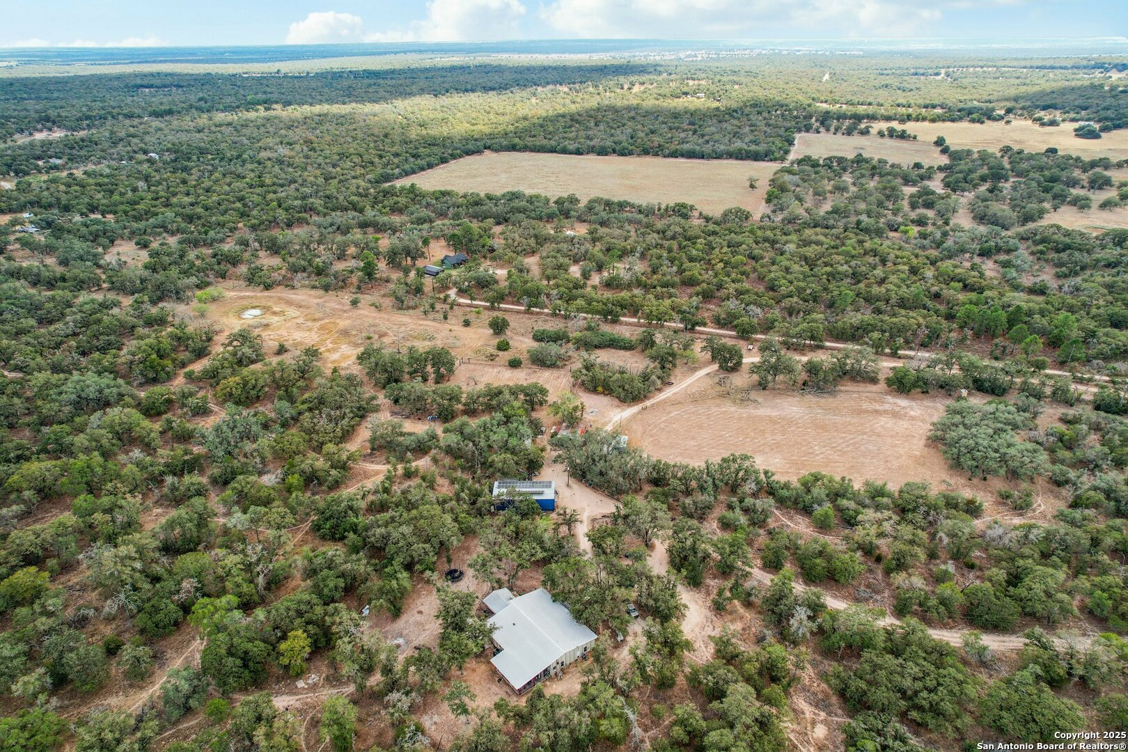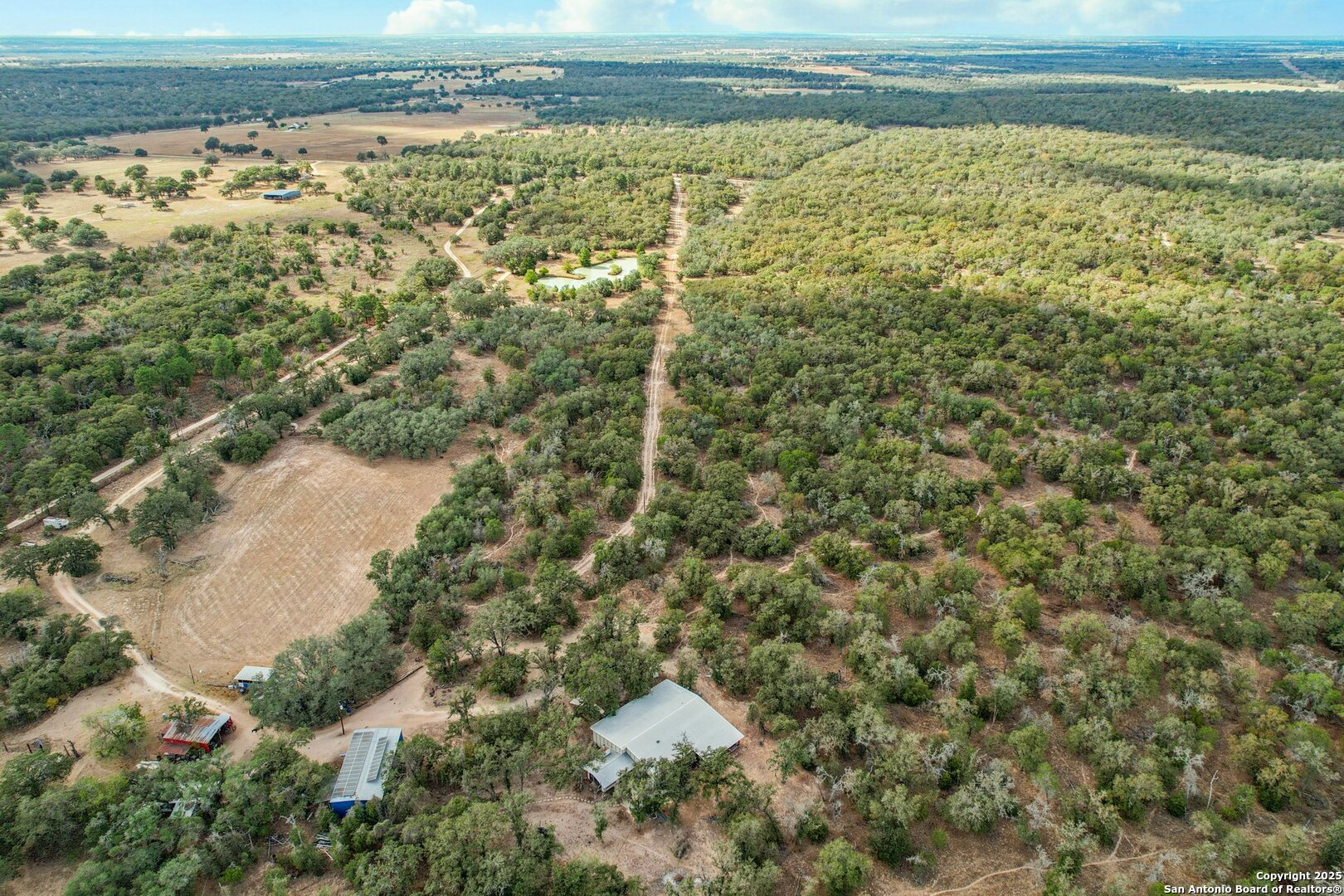 Welcome to 3001 Curry Rd - A Private 80-Acre Ranch Retreat in Seguin, TX. Experience the best of Texas Hill Country living on this unrestricted 80-acre ranch-a rare and versatile property perfect for horses, cattle, hunting, recreation, or simply enjoying the peace and privacy of country life. Currently under a wildlife exemption, this ranch offers a unique blend of natural beauty, modern infrastructure, and long-term value. The heart of the property is a spacious 3,500 sq ft primary residence featuring 4 bedrooms and 3 bathrooms. Originally built in 1972, the home was extensively renovated and expanded in 2019, including a new slab, metal roof, HVAC system, and water softener. The layout includes 30 ft ceilings with large open-concept living and entertaining areas, ideal for hosting family, friends, or simply relaxing while taking in the incredible views, abundant wildlife, and Texas sunsets. A hidden basement concealed behind a bookshelf offers the perfect gun room, safe room, or additional storage space. This property is also great for generational living, with a detached 800 sq ft guest house/casita that's perfect for extended family, visitors, or use as a hunting lodge. Additional features include: Two private water wells, fully paid off solar panels, an 1,800 sq ft workshop with three oversized RV doors and Big Ass Fans, a storage barn for feed, equipment, or tack, a two-stall horse stable and corral, chicken coop, one-acre irrigated orchard, 3-acre fenced and cross-fenced pasture for livestock with irrigation attachment, two ponds, and two hunting blinds. A tractor and all attachments will convey with the sale, providing everything you need to manage and enjoy the land from day one.Even more valuable, 100% of the seller's owned mineral rights and water rights will convey, ensuring long-term opportunity and security for future generations. Whether you're looking for a working ranch, recreational retreat, or a multi-family compound, 3001 Curry Rd offers a rare chance to own a legacy property with unmatched versatility and comfort. Call today to schedule your private tour of this exceptional ranch!