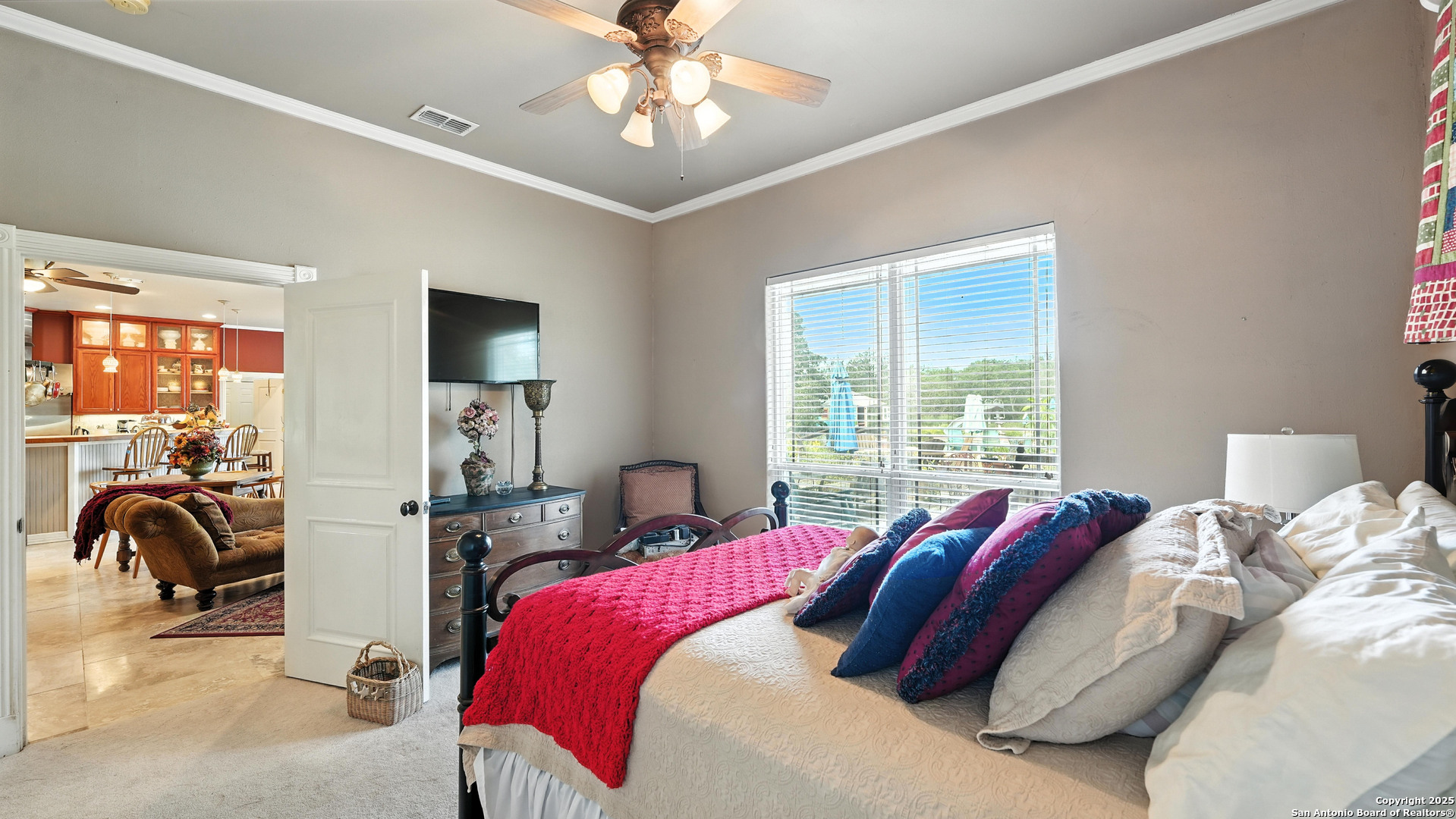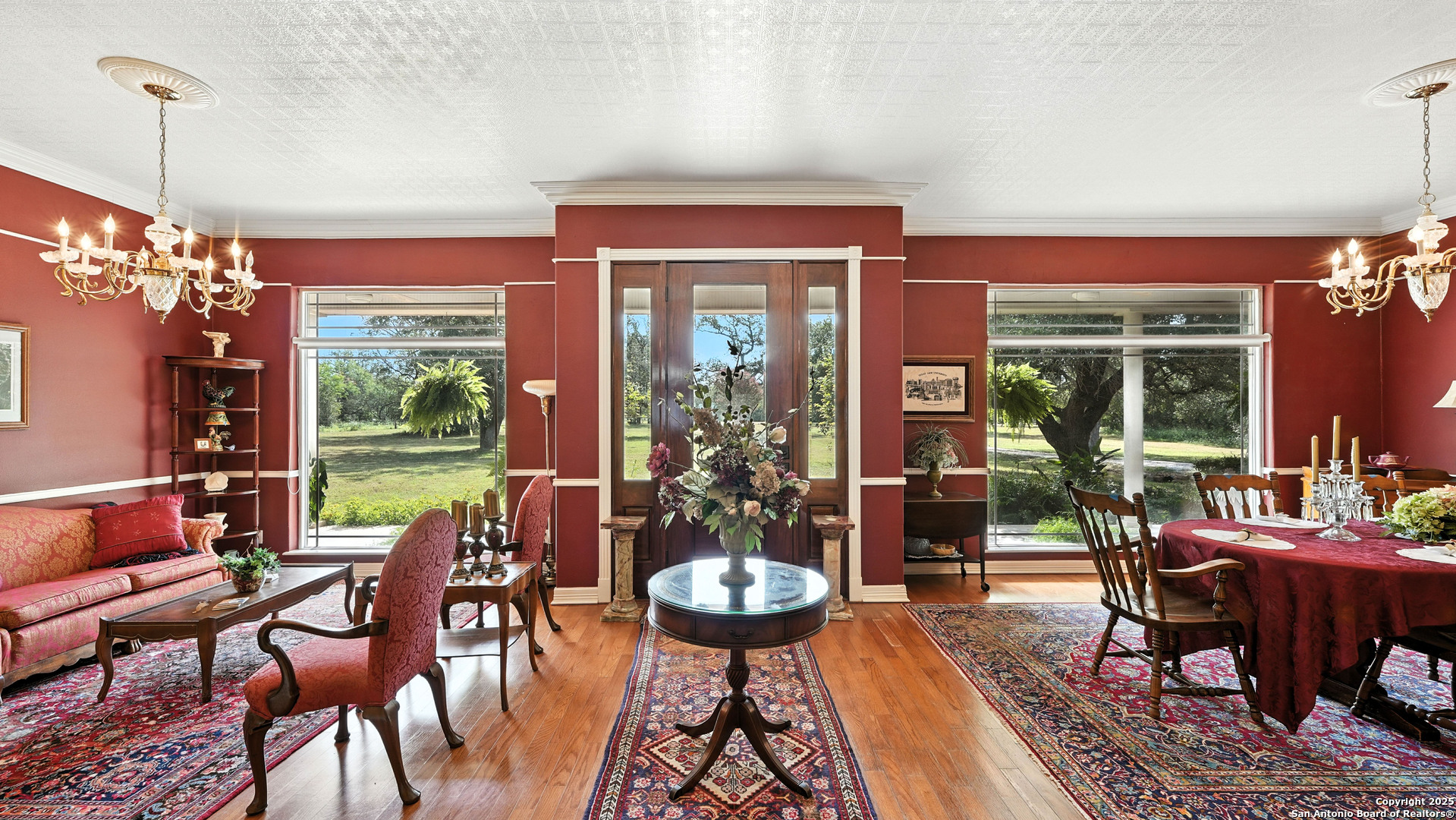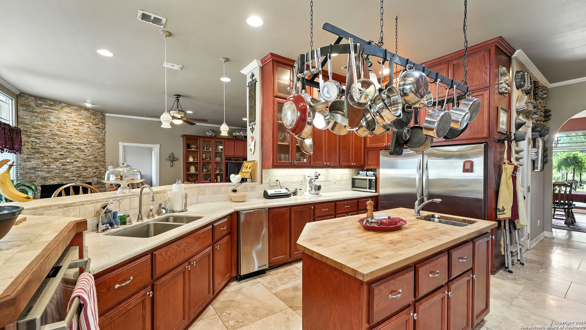 Exquisite 3,300 sq ft custom estate on 11+ unrestricted acres with a 1,000 sq ft covered porch, in-ground pool, and private guest casita. Chef's kitchen with premium appliances, commercial grade gas range and refrigerator, butcher block island, and butler's pantry. Thoughtful layout with formal living, dining, great room with fireplace, breakfast area, and office with murphy bed. Luxe primary suite with spa-style wet room, dual vanity, spacious his and hers closet, safe room and laundry access at the mudroom. Additional third bedroom with private en-suite. Outdoors offers a brick pizza oven, fire pit, greenhouse, garden, native brush, and abundant wildlife. 30x40 insulated workshop, 4-car carport, winding private driveway and ranch fencing. Ag valuation, new HVAC (2025), standing seam metal roof, and fiber internet. Select furnishings negotiabl