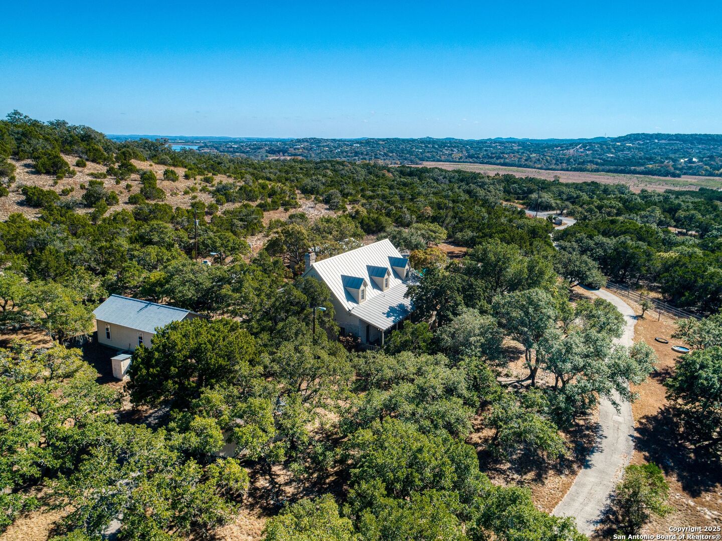 Discover this 18 acre Texas Hill Country Haven with Timeless Charm. A separate Guest House with 535 sq ft is ideal for housing family and friends. This remote retreat also features a 51' x 24' 5-Car Barn with abundant room for vehicles and equipment, Horse Stalls. Unwind on the Covered Porch with sweeping Hill Country Views, Separate Outdoor Kitchen with Fireplace, Gas Grill. Sparkling Pool with Waterfall. Plantation Shutters throughout this inviting Hill Country Home with a Lovely Kitchen, Stone Backsplash, Island with Electric Cook Top. Come experience the quiet, the space, and the freedom for yourself!