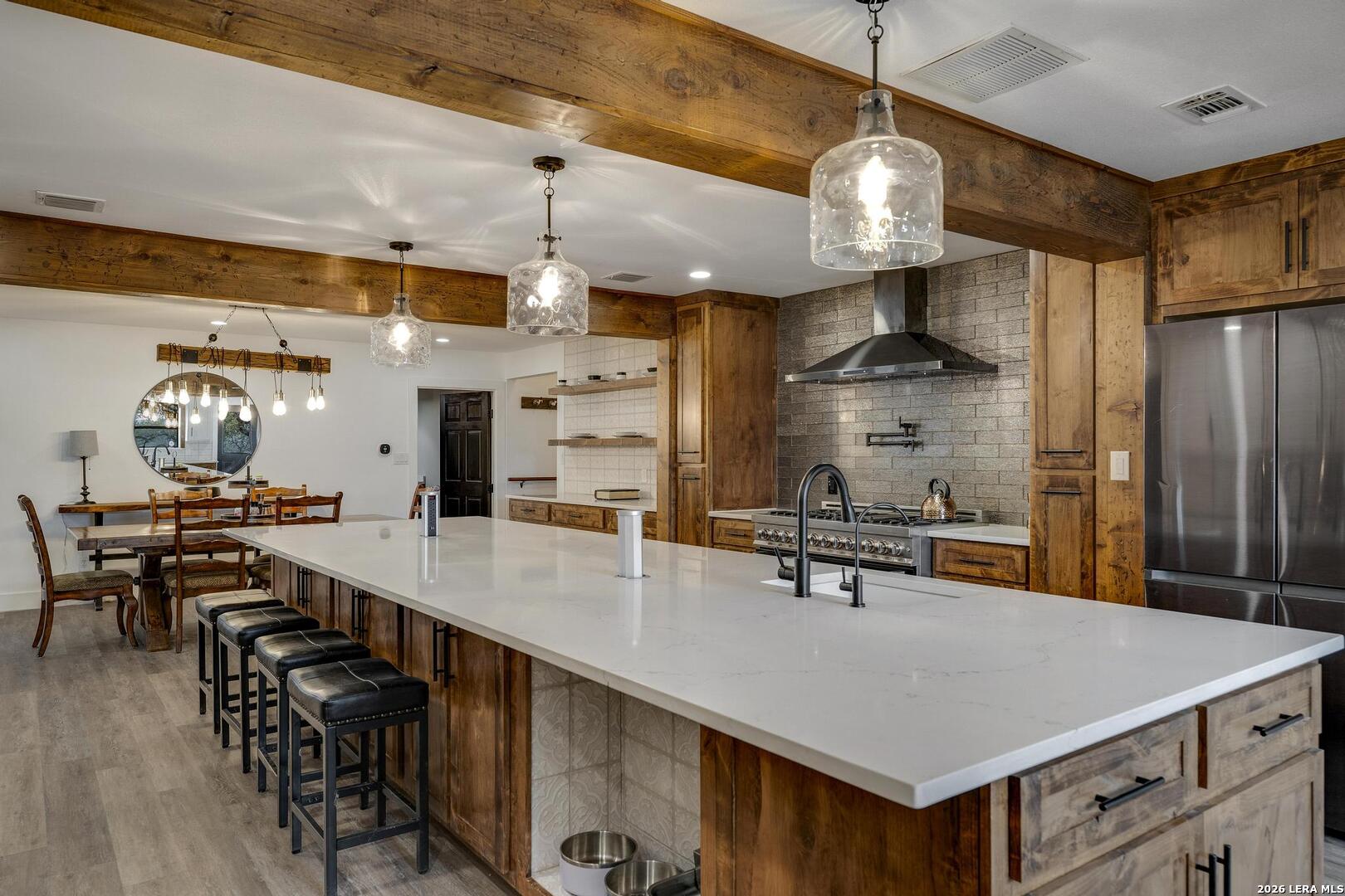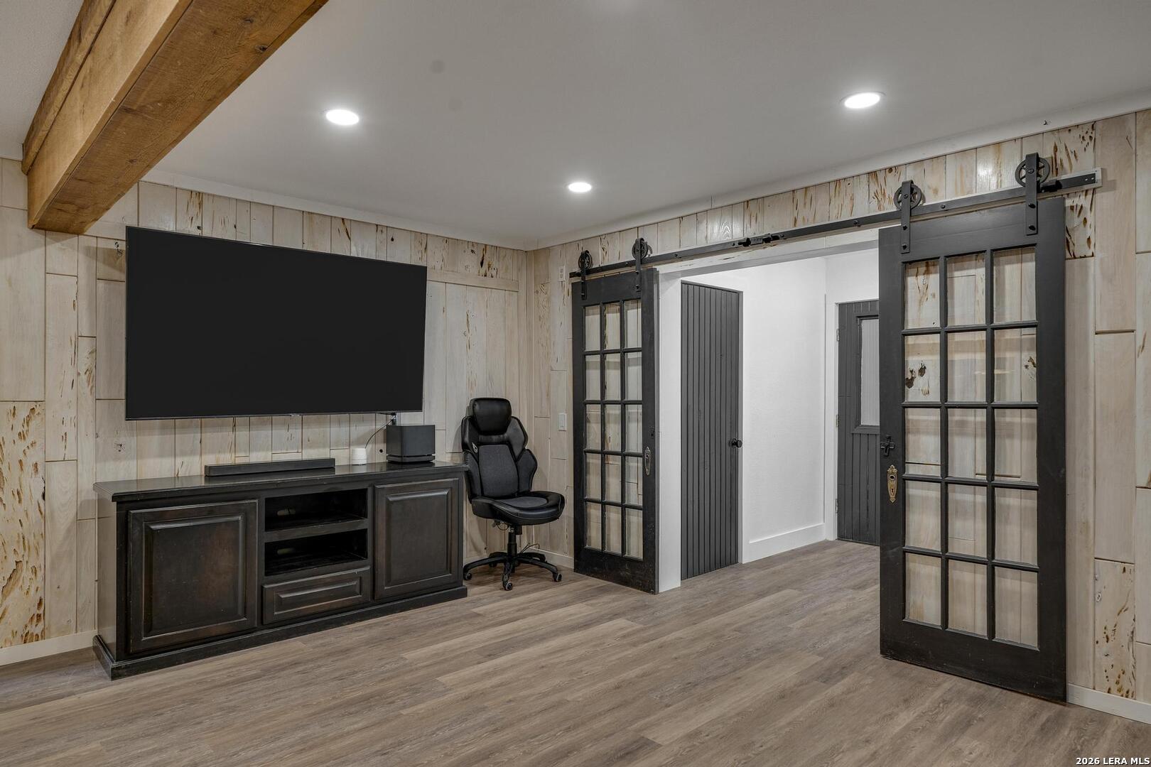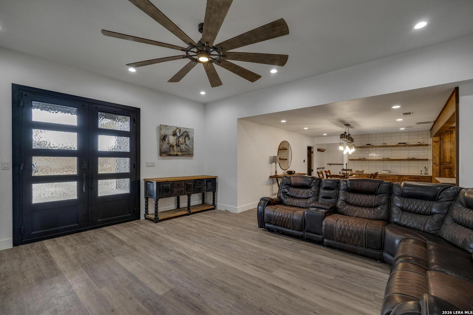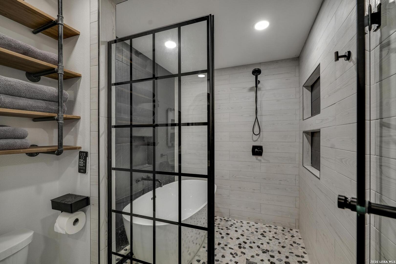 Set within a gated private 1,000-acre gated community of just 16 landowners, 365 Bluff Creek is a premier 60.87-acre Hill Country ranch estate offering exceptional privacy, security, and scenic beauty just minutes from Comfort, Kerrville, and Center Point, also within easy 30-45 minutes of Fredericksburg and San Antonio. The property features rolling terrain, abundant free-ranging whitetail and Axis deer with hunting permitted, and a fully remodeled 5,006-square-foot luxury barndominium designed for both comfort and entertaining, complete with a gourmet kitchen, expansive living areas, theater room, mancave, and secure gun room. Purpose-built for equestrian and ranch use, the estate includes a professional pipe roping arena, six oversized horse stalls with automatic waterers, tack room, cattle chutes, and ample room for livestock or expansion. Offered as a turnkey opportunity with optional furnishings and equipment, this exceptional ranch is ideal as a full-time residence, hunting retreat, or legacy Hill Country gateway. This property also has a 2.25% assumable loan for qualified buyers; with a remaining balance of just over 1 million.