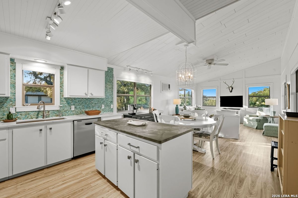 It's River time! River life on the Pedernales has never been so convenient, fun, private, and stylish as it is at 746 Trail Rock Dr.! This rare property is situated on 10 secluded acres just 5 minutes from downtown Johnson City. The Pedernales River Place is comprised of a Main Cottage, Pool House, and a fun multi-bedroom building lovingly called "The Motel", plus an insulated Metal workshop and a workshop building. The Cottage is nicely updated and offers 2 Bedrooms plus 2 Bathrooms, an updated kitchen w/induction cooktop, custom cabinetry, a mudroom w/laundry and a large covered porch perfect for entertaining. The Pool house overlooks the Round Pool w/large flagstone patio and features a glass roll-up garage door, a stylish kitchen/great room combo, and a full bath perfect for servicing the pool. The "Motel" is comprised of 4 bedrooms with Rooms 1 and 3 each with their own bathroom but sharing an adjoining bedroom (offering lots of flexibility for different family/visitor combinations), plus a 4th bedroom fully self contained w/private bath...all open to a common covered front porch overlooking the pretty yard and pool. The "Motel" also features a lockable storage closet and abundant built-in cabinetry. The grounds are immaculate here with a circular drive, plenty of fenced yard space to run and play; gated for security, nicely groomed shade trees, PLUS the easy and approachable access to the over 447' of Pedernales river front! There is a large pasture at the river, and the approach to the river is safe & easy; you'll enjoy activities like flyfishing, floating and kayaking here on the Pedernales! Additionally, the Pedernales River Place offers 2 attractive Workshop spaces: one is a 29' x 29' insulated building with 2 rollup doors perfect for "gameroom","mancave" or Toy garage (plumbed w/sink & heaters) plus an additional workshop building w/equipment shed & closet space...all visually separated by fencing and a motor courtyard. The driveway is chipsealed and for tax savings there is a Beekeepers exemption that begins next year! Located about an hour from Austin & San Antonio; 30 min to Fredericksburg...this is a special property that would make a family legacy property for years to come!