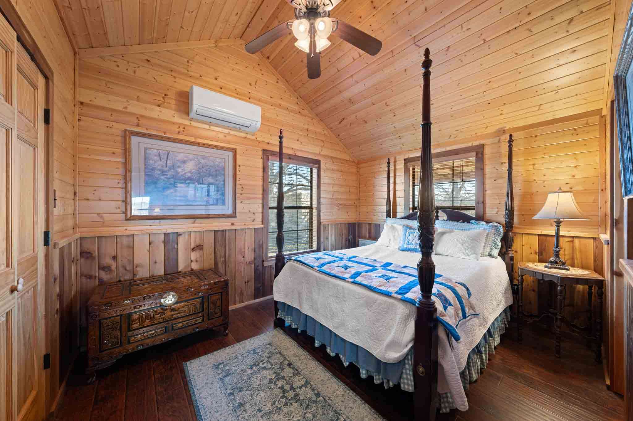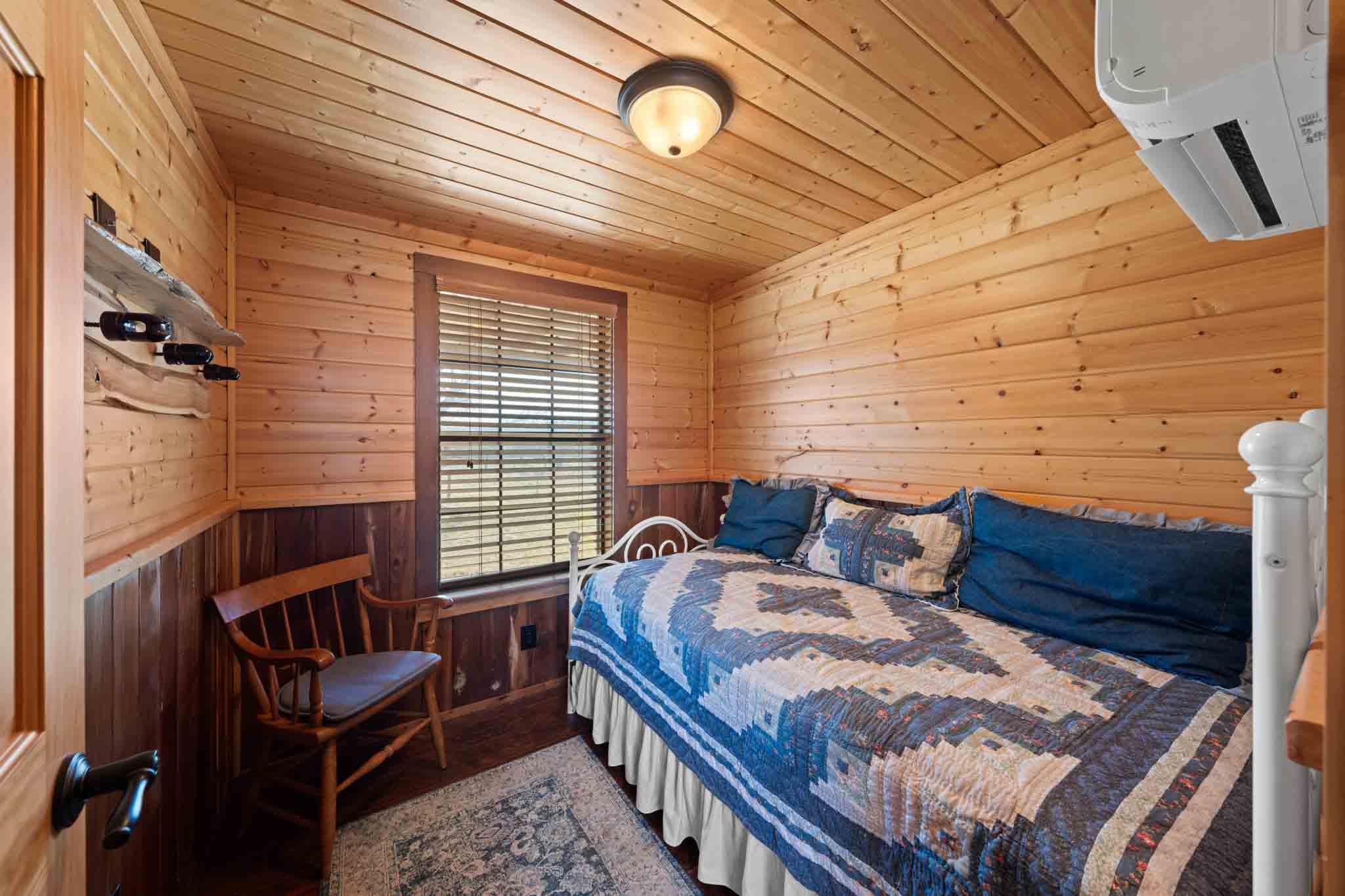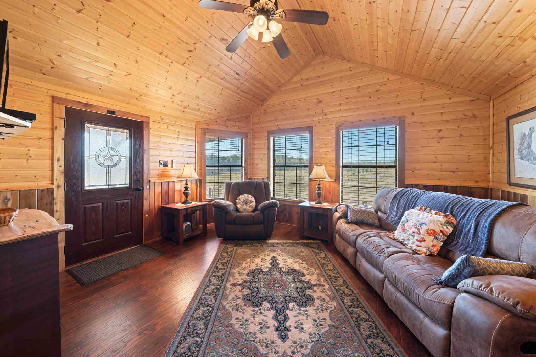 Throughout the cabin, wood accents—including a wood-paneled ceiling—add character and a cozy, rustic feel. This well-appointed cabin offers flexible, comfortable space, well-suited for personal use or guests. The cabin also has a metal roof.
