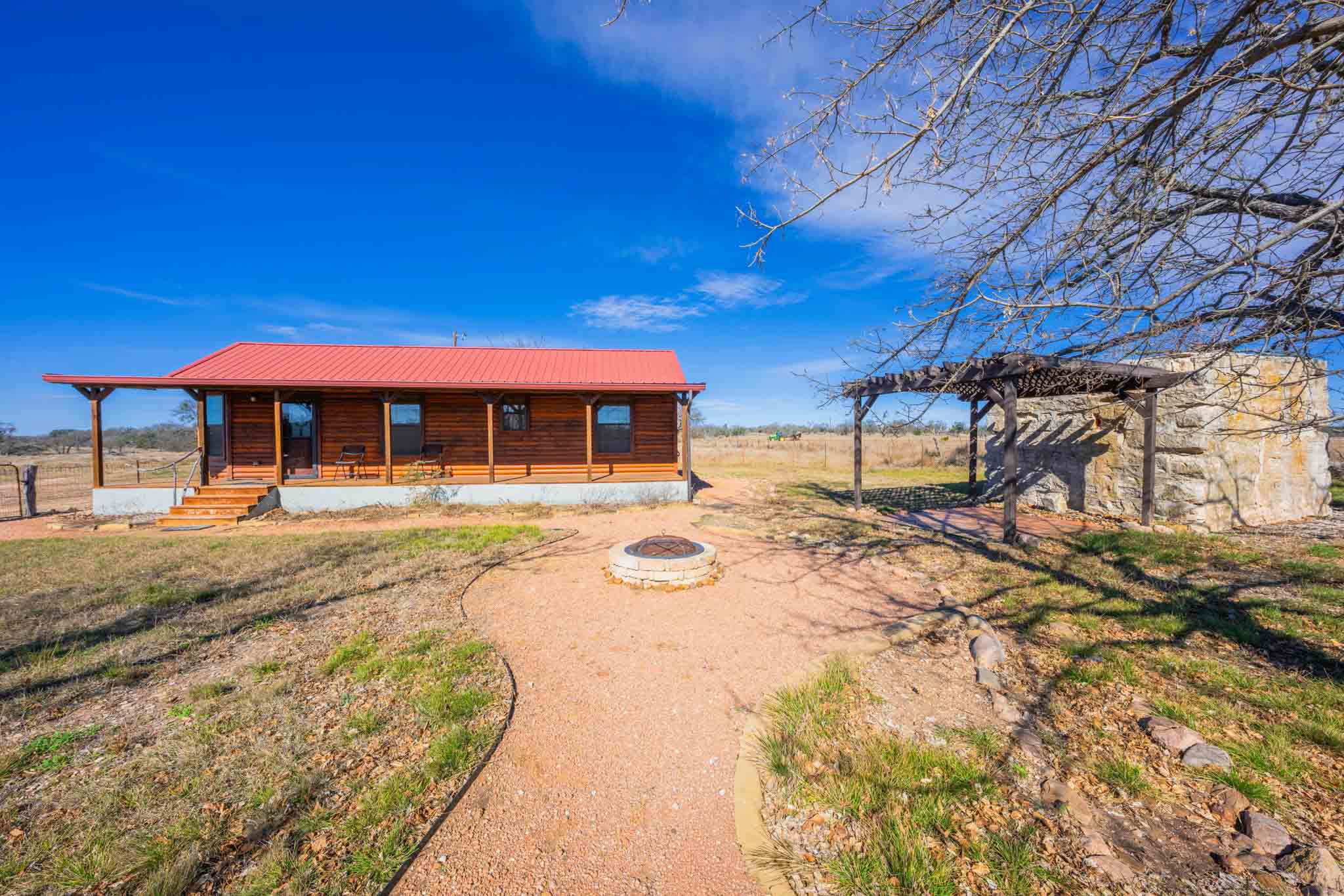 A charming 637± sf Ulrich cabin is situated on the ranch, offering a comfortable and functional retreat surrounded by natural beauty. The cabin features a covered front porch, ideal for enjoying peaceful sunrises and sunsets, as well as the sights and sounds of the Hill Country. Inside, the thoughtfully designed layout includes one bedroom, one bathroom, and a versatile loft that can serve as additional sleeping space or storage.