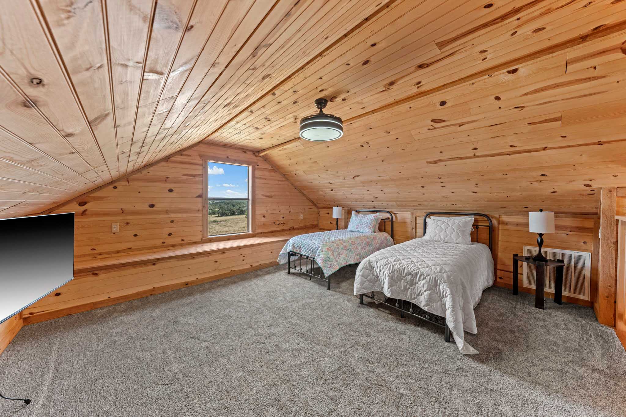 The property is enhanced by a fully appointed, furnished 1,392± sf cabin built in 2021, constructed from pine and cedar. The cabin features two bedrooms, two bathrooms, an upstairs loft, a spacious den, and a fully equipped kitchen, making it ideal for hosting family and friends.