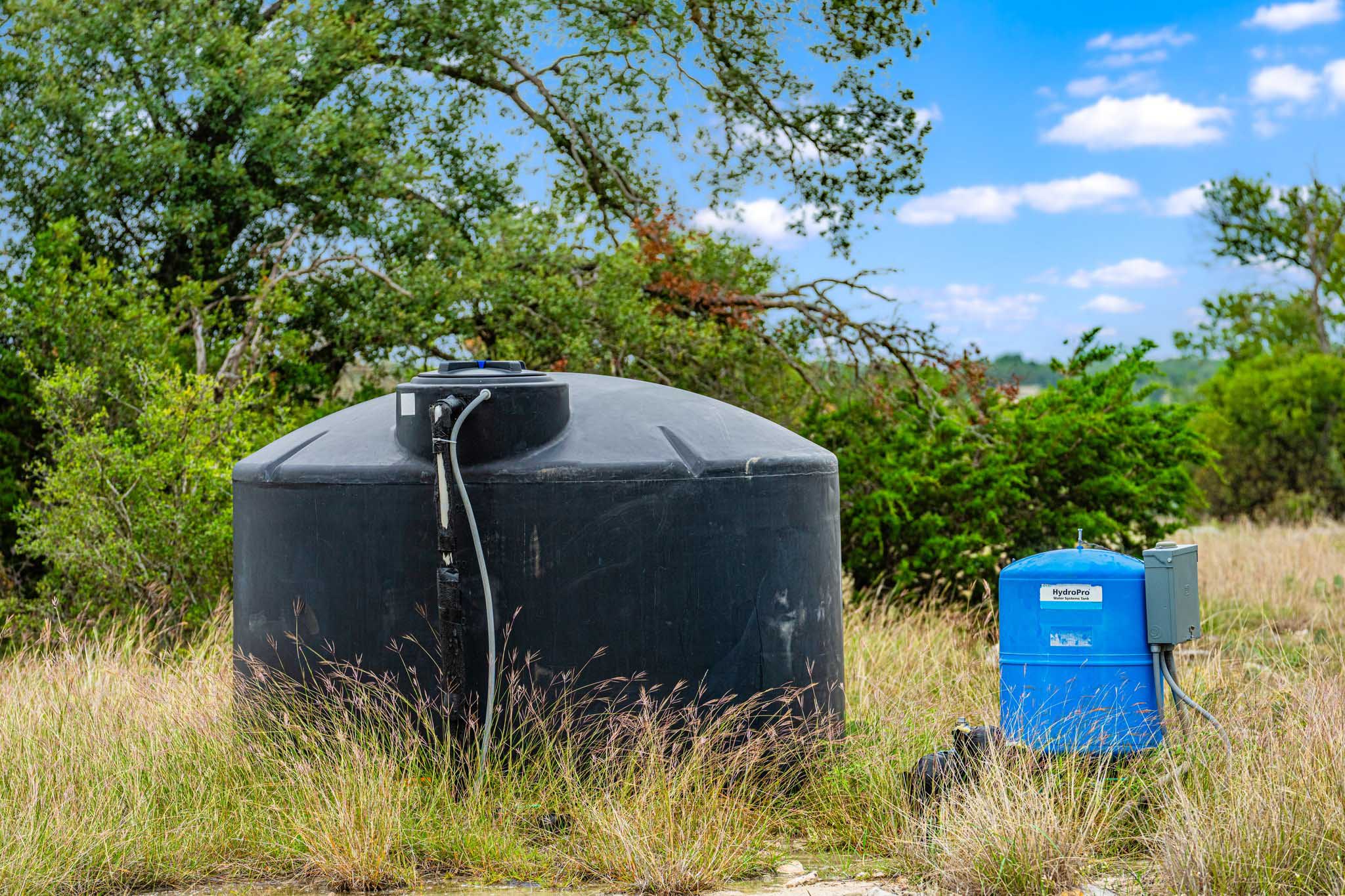 The ranch features the dry East Prong of the Nueces River and a surface tank. One water well services the cabin and a nearby water trough.