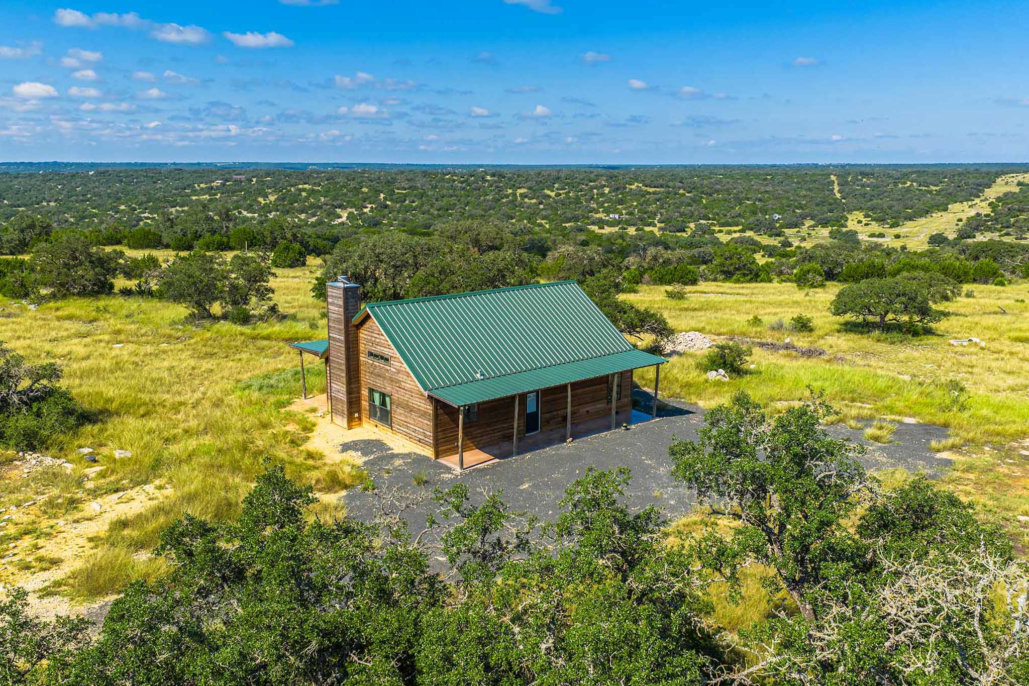 Stunning 100± acre Hill Country retreat—Hackberry Road Ranch features a custom pine-and-cedar cabin, exceptional hunting opportunities, and sweeping panoramic views. Situated within the 2,500± acre, biologist-managed Dominion at Real Valley Ranch, the property is home to an impressive variety of native and exotic game animals. A private, gated entrance off Hackberry Road, along with its proximity to Highway 41, ensures both convenient access and the quiet seclusion of a true getaway.